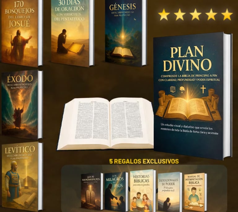 Muchos creyentes luchan con la falta de disciplina y claridad. Intentan leer la Biblia pero se frustran por no saber cómo entenderla o aplicarla. PLAN DIVINO es la guía visual que te toma de la mano y te acompaña a través de cada etapa del conocimiento bíblico.